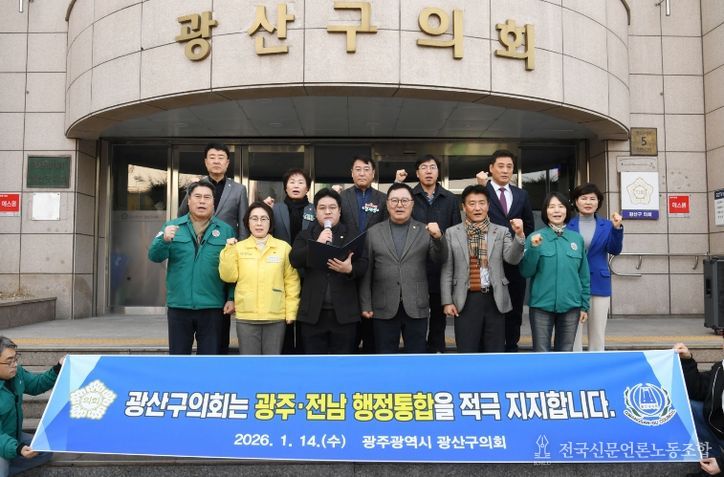 전국신문언론노동조합 강찬희 기자 | 광산구의회가 광주·전남 행정통합을 지지하는 공식 성명서를 발표하며, 통합 추진의 신속한 이행을 강력히 촉구했다.