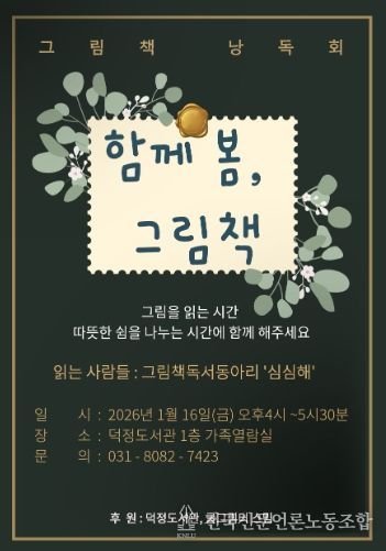 전국신문언론노동조합 기자 | 양주시 덕정도서관은 오는 1월 16일 16시부터 17시 30분까지, 도서관 1층 가족열람실에서 그림책 낭독회 '함께 봄, 그림책'을 운영한다.