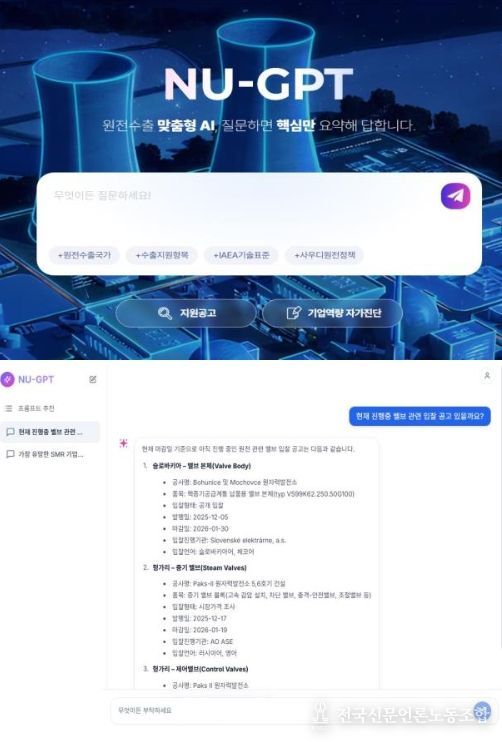 전국신문언론노동조합 강찬희 기자 | 산업통상부는 원전 중소·중견기업의 수출지원을 위한 AI 기반 수출 통합정보시스템 ‘NU-GPT’ 출시행사를 1월 15일 개최한다고 밝혔다.