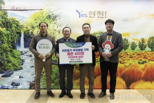 전국신문언론노동조합 기자 | 연천군양계협회는 지난 15일 연천군청을 방문해 지역 내 취약가정을 지원하기 위해 계란 400판(300만원 상당)을 연천군가족센터에 후원물품으로 지정 기탁했다.