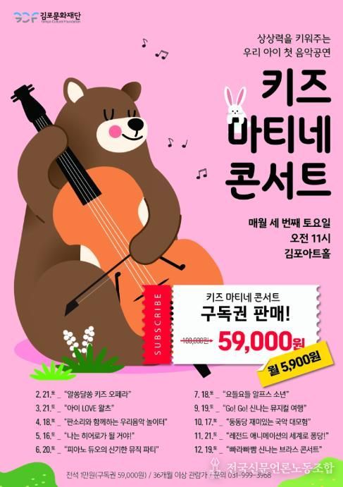전국신문언론노동조합 기자 | (재)김포문화재단은 2025년도 객석점유율 99%, 2024~2025 2년 연속 관객만족도 98점을 달성한 '키즈 마티네 콘서트'를 2026년에도 연속하여 개최한다고 밝혔다.