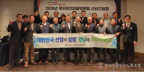 전국신문언론노동조합 강찬희 기자 | 경상남도(도지사 박완수)는 16일 서울 롯데호텔에서 전·현직 대기업 CEO와 산업별 전문가로 구성된 '투자유치자문위원회 신년 간담회'를 개최했다.