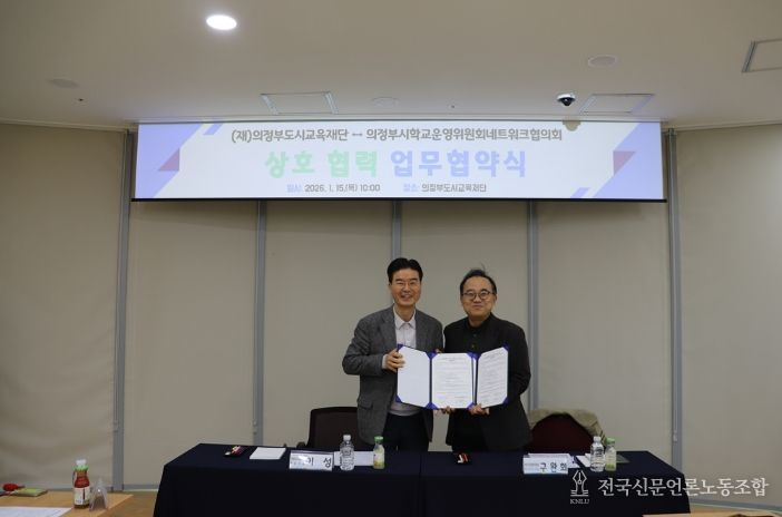 전국신문언론노동조합 기자 | 의정부도시교육재단은 1월 15일 의정부시학교운영위원회네트워크협의회와 ‘지역 내 교육 자원 및 교과연계형 도시교육 사업 발굴을 위한 업무협약’을 체결했다고 밝혔다.
