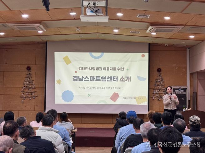 전국신문언론노동조합 강찬희 기자 | 경상남도는 16일 김해시의 중독전문의료기관인 김해 한사랑병원에서 스마트폰 과의존 예방을 위한 교육을 진행했다고 밝혔다. 이번 교육은 스마트폰 사용 습관을 점검하고, 과의존의 위험을 줄이며 건강한 디지털 사용 방법을 배우고자 하는 100여 명의 이용자(환자)들이 참여했다.
