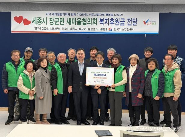 한국가스안전공사는 이날 세종시 장군면 새마을협의회에 복지후원금을 전달했다. 세종시새마을회는 지역 봉사와 생활환경 개선, 주민 지원과 나눔 활동을 꾸준히 이어오고 있다.