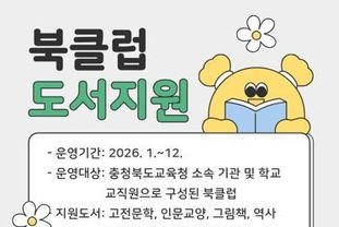 전국신문언론노동조합 김성길 기자 | 충청북도교육청 직속기관 교육도서관은 1월부터 12월까지 도내 교직원의 지속적인 독서 활동을 장려하고 책 읽는 문화를 확산하기 위해 2026년 '공감하는 북클럽 도서 지원 사업'을 연중 상시 운영한다.