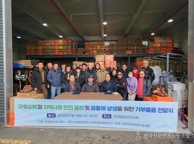 전국신문언론노동조합 기자 | 파주시는 지난 14일, 사회적기업 ㈜통일안전기획이 기부한 안전화 3,000켤레를 ㈔파주시공유경제네트워크가 지역 수요에 맞춰 배분하는 전달식을 진행했다고 밝혔다.