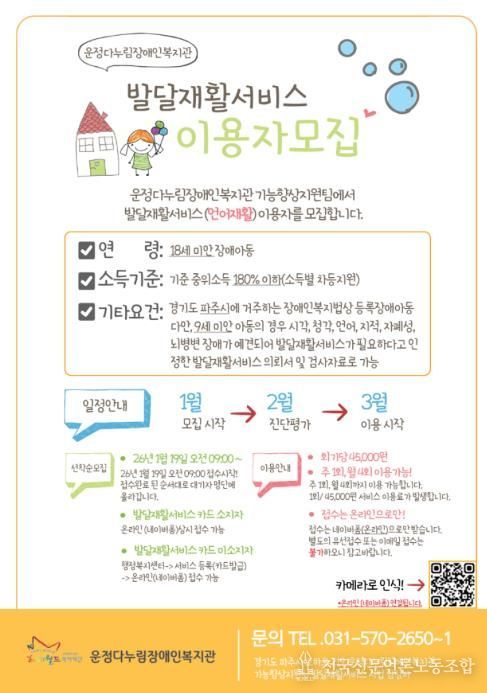 전국신문언론노동조합 기자 | 파주시는 운정다누림장애인복지관을 통해 발달지연 및 장애로 언어재활치료가 필요한 아동을 위한 ‘발달재활서비스(언어재활)’를 지원한다고 밝혔다.
