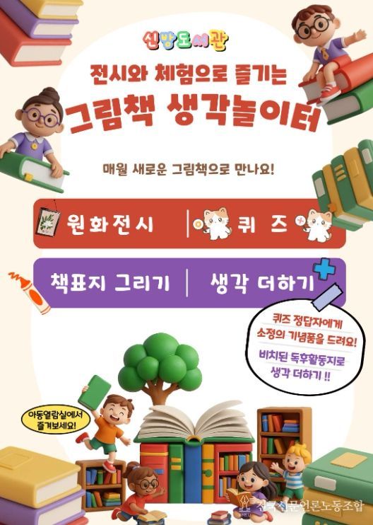 전국신문언론노동조합 강찬희 기자 | 천안시 신방도서관은 전시와 체험이 어우러지는 ‘그림책 생각놀이터’를 운영한다고 19일 밝혔다.