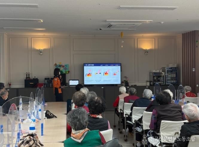 전국신문언론노동조합 강찬희 기자 | 천안서북소방서는 어제 천안시 한빛재활주간보호센터에서 센터 이용 어르신과 종사자들을 대상으로 심폐소생술(CPR) 및 소화기 사용법 교육과 실습을 진행했다.