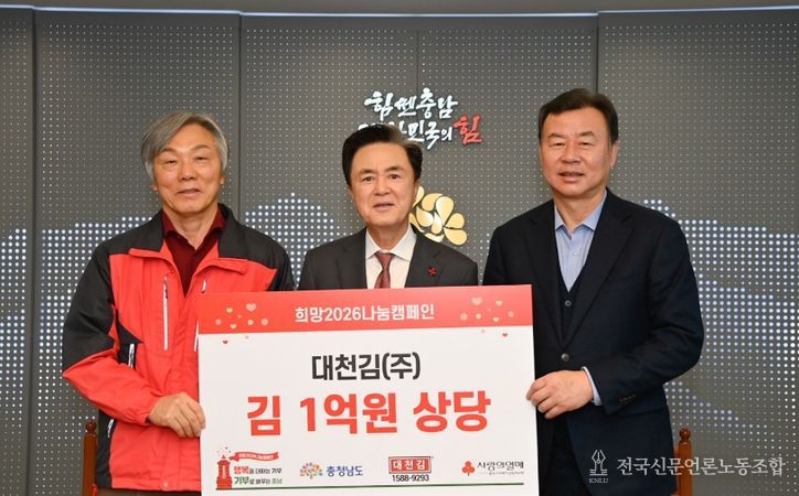 이날 도지사 외부접견실에서 열린 전달식에는 김태흠 지사를 비롯해 최민순 대천김 총괄대표, 성우종 충남사회복지공동모금회장 등이 참석해 나눔의 의미를 함께했다.