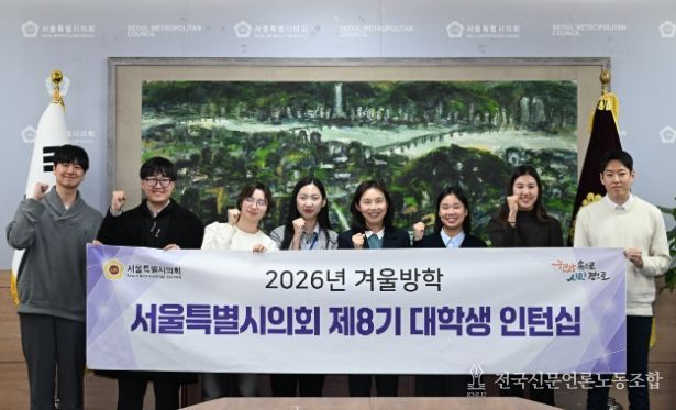 전국신문언론노동조합 강찬희 기자 | 서울특별시의회 최호정 의장(국민의힘, 서초4)은 26일 의회 본관 의장접견실에서'제8기 겨울방학 대학생 인턴 간담회'를 개최하고, 청년들과 서울시 정책 현안, 일·가정 양립 고민 등을 주제로 진솔한 대화를 나눴다. 이번 간담회에는 대학생 인턴 7명이 참가했으며, 각자가 수행 중인 정책 연구 주제와 활동 소감을 공유했다.