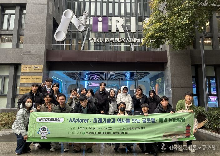 전국신문언론노동조합 김성길 기자 | 전남대학교 창의융합학부(학부장 이인혜)는 ‘글로컬대학사업’의 일환으로 지난 1월 20일부터 23일까지 3박 4일간, 중국 상해와 항주 일대에서 무전공 학생들을 위한 글로벌 진로 탐방 프로그램 'AXplorer: 미래기술과 역사를 잇는 글로벌 탐방'을 성황리에 마쳤다.