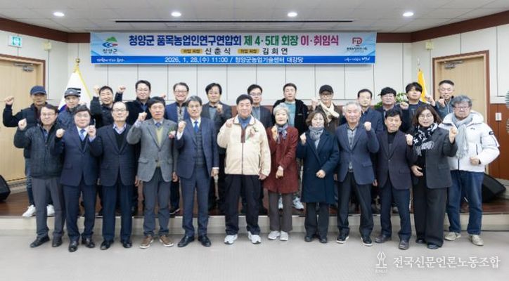 전국신문언론노동조합 강찬희 기자 | 청양군은 지난 28일 농업기술센터에서 품목농업인연구연합회 회원 및 내빈 등 100여 명이 참석한 가운데 연합회장 이·취임식을 개최했다고 밝혔다.