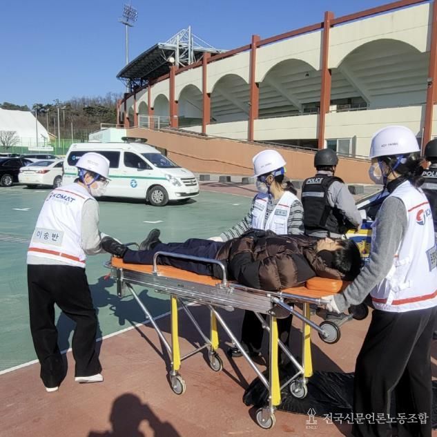 전국신문언론노동조합 기자 | 동두천시보건소는 지난 1월 29일 동두천시 종합운동장에서 동두천경찰서 주관으로 실시된 강력범죄 대응 유관기관 합동 모의훈련에 참여해 보건소 신속대응반 출동 및 현장 대응 훈련을 실시했다고 밝혔다.