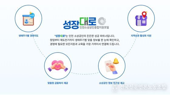 전국신문언론노동조합 강찬희 기자 | 인천신용보증재단은 소상공인 종합지원 통합포털 성장대로를 구축 완료하여 공식 오픈한다고 2일 밝혔다.