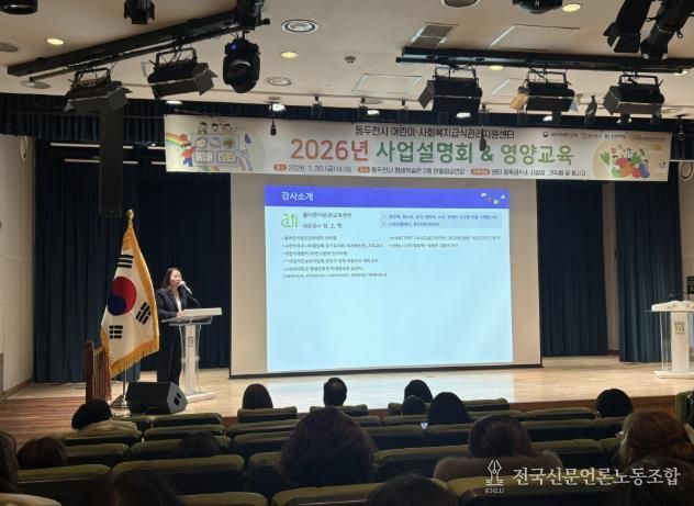 전국신문언론노동조합 기자 | 동두천시는 지난 1월 30일 동두천시 평생학습관 한울림공연장에서 관내 어린이·사회복지급식소 원장과 시설장 등을 대상으로 ‘2026년 동두천시 어린이·사회복지 급식관리지원센터 사업설명회 및 집합교육’을 개최했다.
