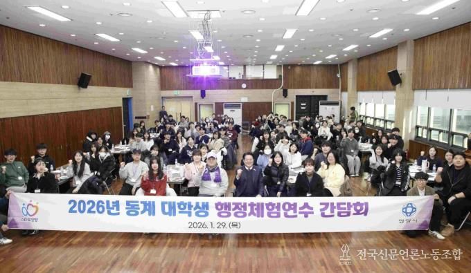 전국신문언론노동조합 김성길 기자 | 안양시는 지난 1월 29일 동안구청 대회의실에서 ‘2026년 동계 대학생 행정체험연수’ 참여자들과 소통 간담회를 열고, 4주간의 연수 과정을 마무리했다고 3일 밝혔다.