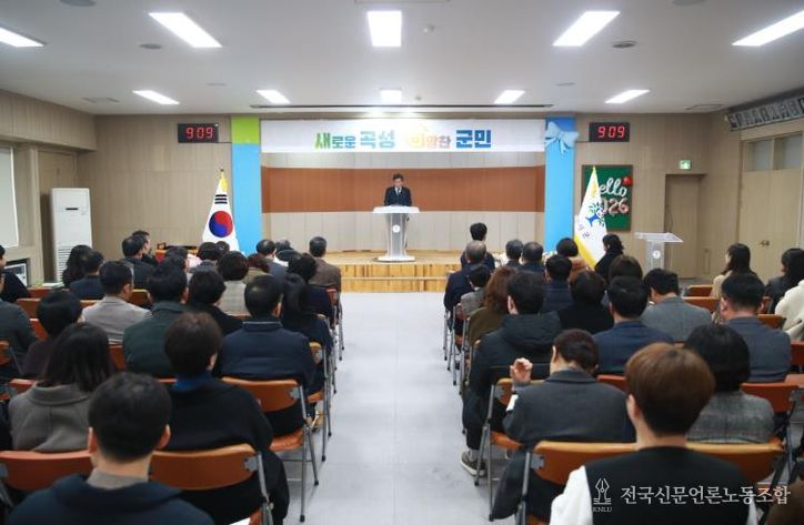 전국신문언론노동조합 강찬희 기자 | 전남 곡성군은 지난 2일 군청 대통마루에서 공직자 150여 명이 참석한 가운데 정례조회를 열고, 연초부터 이어진 주요 군정 현안을 정리하며 농어촌 기본소득과 군민과의 대화, 설 명절 대비 대책 등 생활과 직결된 정책 추진 상황을 종합적으로 점검했다.