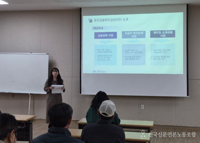 전국신문언론노동조합 강찬희 기자 | 제주금융복지상담센터(센터장 부성진)는 2월 3일 서귀포오름지역자활센터를 방문해 자활근로 참여주민을 대상으로 금융복지 상담 안내 및 교육을 실시했다고 밝혔다.