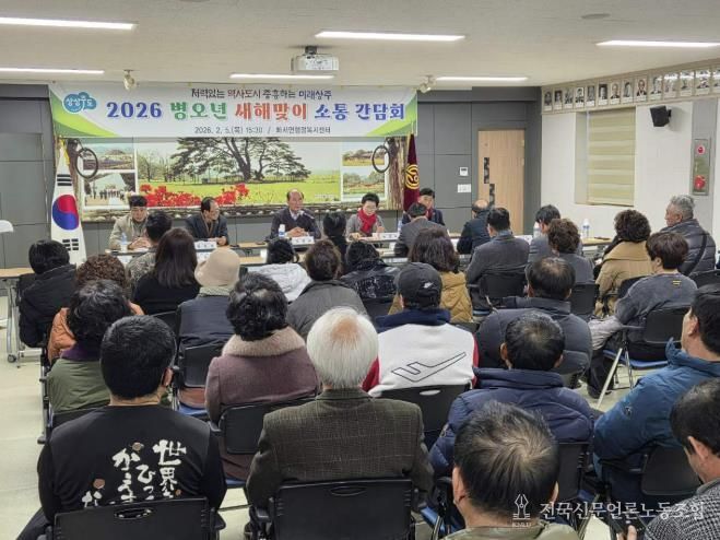 전국신문언론노동조합 강찬희 기자 | 상주시 화서면에서는 2월 5일 목요일 화서면행정복지센터 2층 회의실에서 관내 기관․단체장과 이장 등 주민 70여 명이 참석한 가운데 2026년 새해맞이 화서면 소통 간담회를 개최했다.