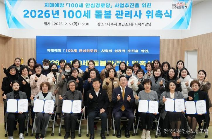 전국신문언론노동조합 강찬희 기자 | 초고령사회에 선제적으로 대응하기 위해 나주시가 ‘100세 돌봄관리사’를 중심으로 한 현장 밀착형 치매예방 서비스를 본격 가동한다.