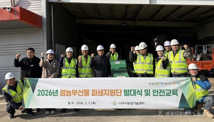 전국신문언론노동조합 강찬희 기자 | 전라남도 나주시는 지난 5일 영농부산물 파쇄지원단 발대식을 하고 사업 추진을 위한 안전교육과 장비 점검 등 본격적인 운영 준비를 마쳤다.