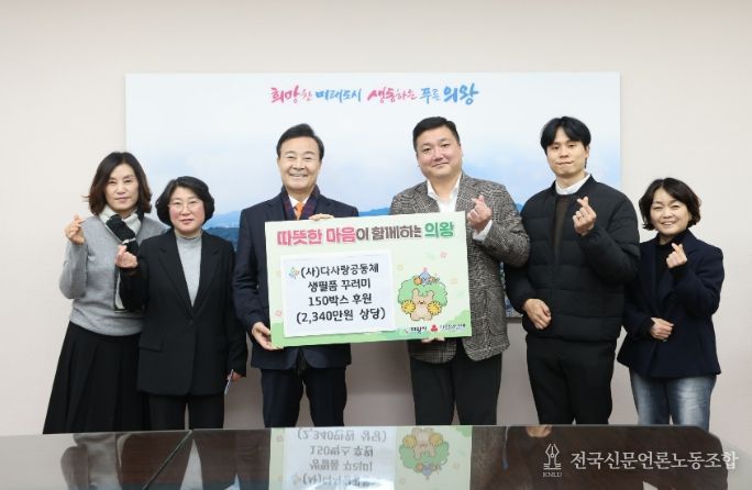 전국신문언론노동조합 김성길 기자 | 의왕시가 2월 5일 시장 집무실에서 지역 내 어려운 이웃을 돕기 위한 ‘이웃돕기 후원물품 전달식’을 개최했다.