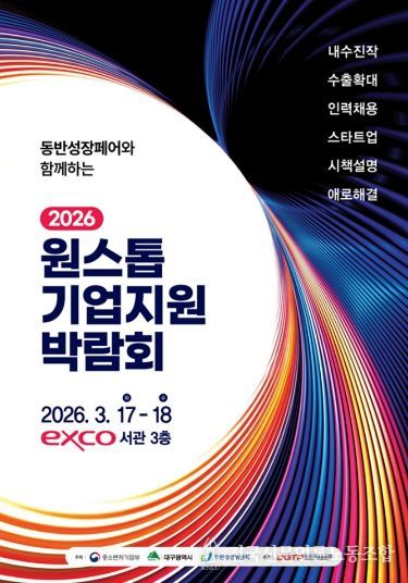 전국신문언론노동조합 강찬희 기자 | 대구광역시는 지역기업의 지속 가능한 성장을 지원하기 위해 오는 3월 17일부터 18일까지 EXCO 서관 3층에서 열리는 ‘동반성장페어와 함께하는 2026 원스톱 기업지원박람회’ 참가기업을 모집한다.