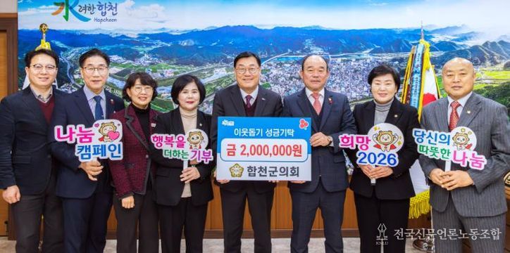 전국신문언론노동조합 강찬희 기자 | 합천군의회는 10일 군수실에서 관내 어려운 이웃돕기 성금으로 200만원을 기탁했다.
