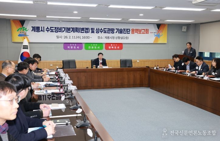 전국신문언론노동조합 강찬희 기자 | 충남 계룡시는 11일 시청 상황실에서 ‘계룡시 수도정비계획(변경) 용역’ 보고회를 개최했다고 밝혔다.