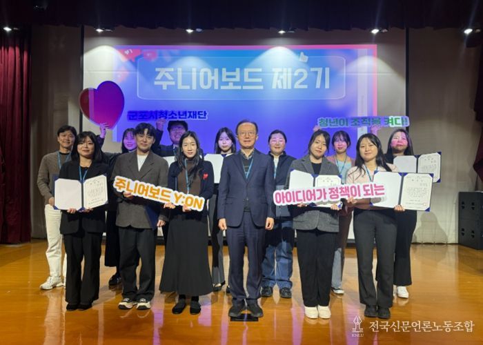 전국신문언론노동조합 김성길 기자 | 군포시청소년재단은 2월 12일 월례미팅을 통해 중장기 경영 방향을 공유하고, 주니어보드 Y:ON 제2기 위촉식과 내부 교육을 진행했다.