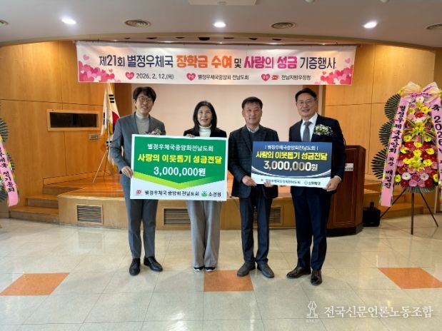 윤철성 도회장은 “별정우체국 제도 도입 취지를 살리고 사회적 책임을 다하기 위해 광주·전남 지역 직원들이 이웃 돕기에 지속적으로 동참하겠다”고 밝혔다.
