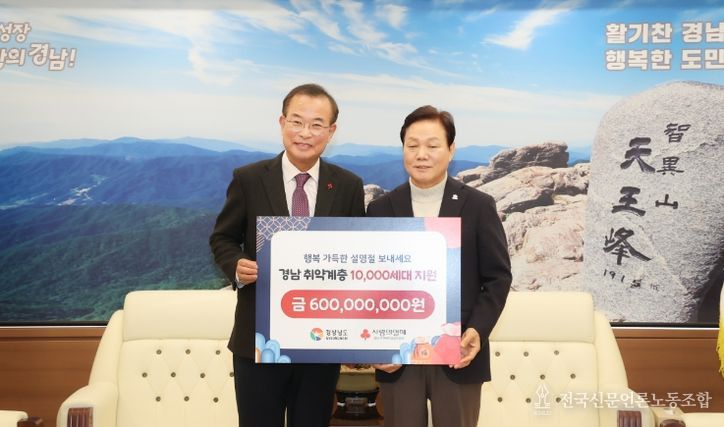 전국신문언론노동조합 강찬희 기자 | 경상남도는 경남사회복지공동모금회(회장 강기철)가 설 명절을 앞두고 도내 어려운 이웃 지원을 위한 위문금 6억 원을 전달했다고 밝혔다.