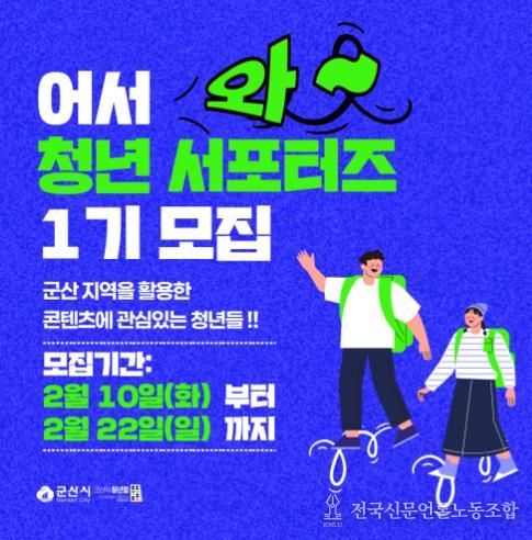 전국신문언론노동조합 강찬희 기자 | 군산시 청년뜰(청년센터·창업센터)이 군산의 숨은 가치를 청년의 시각으로 재발견하고, 이를 콘텐츠로 널리 알릴 ‘군산 청년 서포터즈 1기’를 공개 모집한다.
