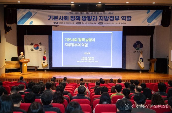 시는 20일 시청 대강당에서 전 직원을 대상으로 '기본사회의 방향과 지방정부의 역할'을 주제로 특별강연을 개최하고, 군산형 기본사회 모델 설계를 위한 정책 이해와 실행 방향을 공유했다.