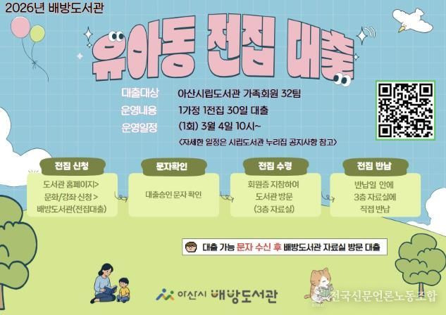 전국신문언론노동조합 강찬희 기자 | 아산시 배방도서관이 3월부터 유·아동을 대상으로 전집 대출 서비스를 확대 운영한다.