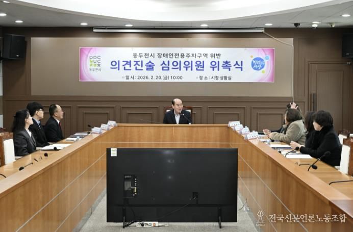 전국신문언론노동조합 김성길 기자 | 동두천시는 2월 20일 시청 상황실에서‘장애인주차구역 위반 의견진술심의위원회’신규 위원 위촉식을 개최했다.