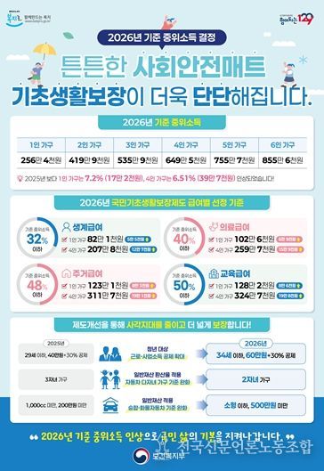 이는 2025년 대비 12만 7,000원 인상된 금액으로, 그동안 소득·재산 기준으로 지원을 받지 못했던 저소득 가구 일부가 새롭게 수급 대상에 포함되게 됐다.
