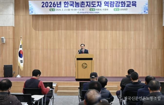 전국신문언론노동조합 강찬희 기자 | 창녕군은 한국농촌지도자창녕군연합회가 23일 경화회관에서 회원 100여 명이 참석한 가운데 2026년 역량강화교육을 실시했다고 밝혔다.