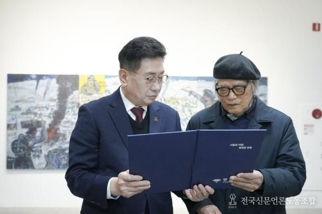 전국신문언론노동조합 김성길 기자 | 원로작가 이동표 화백의 작품 기증식이 지난 23일 오전 11시 20분 양평군립미술관 지하 전시장에서 진행됐다. 기증식에서는 전진선 양평군수가 기증증서를 수여했으며, 이어 작가의 작품 설명과 전시 관람이 진행됐다. 기증 작품은 양평군립미술관 수장고에 보관되며, 군립미술관 기획 전시를 비롯해 향후 국제평화공원 및 양평박물관 개관 시 활용될 예정이다.