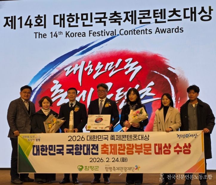 전국신문언론노동조합 강찬희 기자 | 전라남도 함평군이 ‘2026 대한민국 축제 콘텐츠 대상’에서 축제관광부문 대상을 수상하며 축제 콘텐츠의 우수성을 인정받았다.