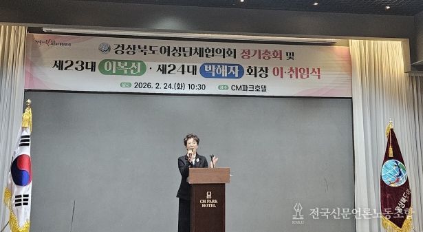 전국신문언론노동조합 강찬희 기자 | 제24대 경상북도여성단체협의회장 취임식이 24일 안동 CM파크호텔에서 열렸다. 이날 행사에는 도내 여성단체 대표와 시·군 여성단체협의회장 등 100여 명이 참석해 새로운 출발을 함께 축하했다.