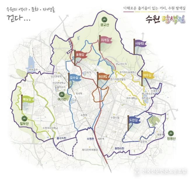 수원시 관계자는 “도시 변화로 단절된 구간을 연결하고 노후화된 안내 시설을 정비하는 데 중점을 뒀다”며 “앞으로도 대중교통과 연계한 보행 환경을 체계적으로 관리해 시민이 안전하게 수원팔색길을 이용할 수 있도록 하겠다”고 말했다.