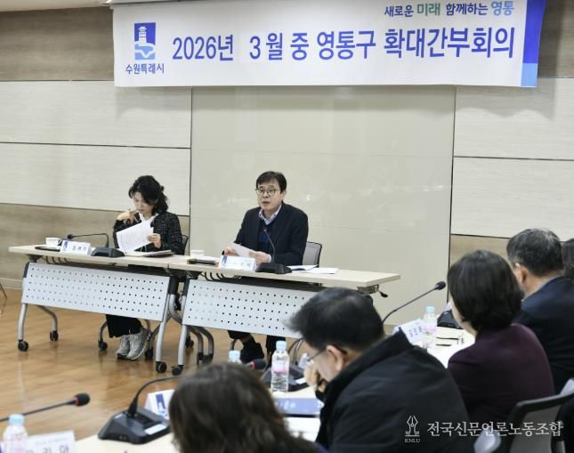 전국신문언론노동조합 김성길 기자 | 수원특례시 영통구는 지난 24일, 구청 상황실에서 ‘2026년 3월 확대간부회의’를 개최하고, 구정 주요 현안을 집중 점검했다.