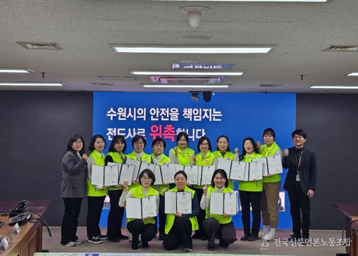 전국신문언론노동조합 김성길 기자 | 수원특례시는 25일 시청 재난안전상황실에서 2026년 새빛안전지킴이 교육 강사 12명에게 위촉장을 수여했다. 위촉 기간은 올해 12월 31일까지다.