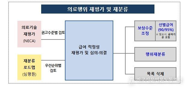 정부는 건강보험에 등재된 의료행위(기술)에 대한 재평가 및 재분류 체계를 정비하여 환자에게는 안전하고 유효한 의료기술을 제공하고 의료기관에는 적정 보상이 이루어질 수 있도록 사후관리체계를 마련한다.