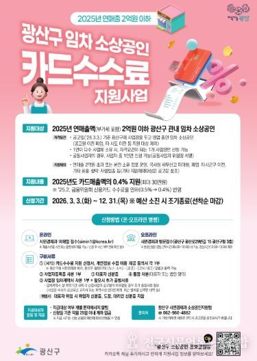 전국신문언론노동조합 강찬희 기자 | 광주 광산구가 민생경제 회복을 위해 광산구 임차 소상공인 카드수수료 지원사업을 실시한다.