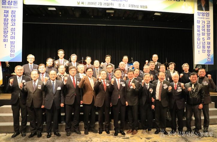 전국신문언론노동조합 강찬희 기자 | 재부산 함양군향우회(회장 윤상돈)는 25일일 오후, 부산 동래구에 있는 허심청 대청홀에서 ‘재부산함양군향우회 제40차 정기총회 및 회장 이취임식’을 성황리에 개최하며 회원 간 화합과 결속을 다졌다.