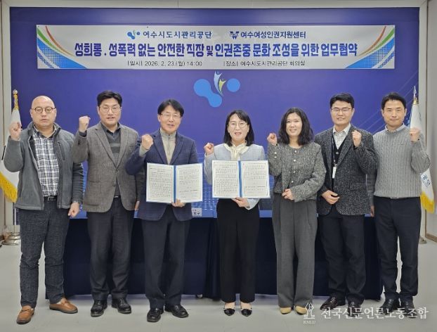전국신문언론노동조합 강찬희 기자 | 여수시도시관리공단은 성평등한 조직문화 정착과 인권친화적 공공시설 조성을 위해 여수여성인권지원센터(센터장 윤은미), 여수시 여성친화도시 시민참여단 위하다WE_하다(단장 이현영)와 잇달아 업무협약을 체결했다고 27일 밝혔다.